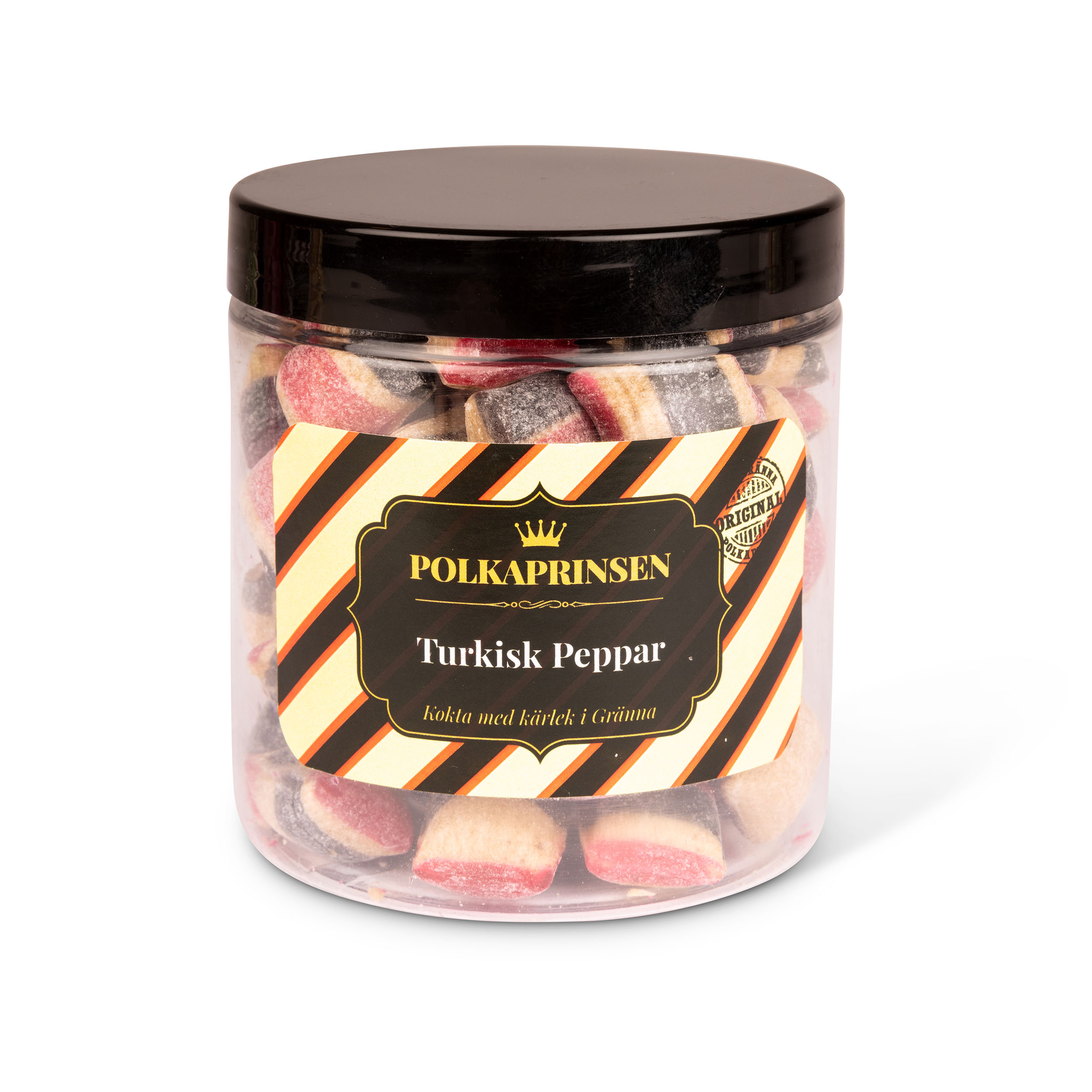 Socker, glukossirap, salmiak, lakritspulver, jalapenopeppar, aromämne, färgämnen (E120, E153).