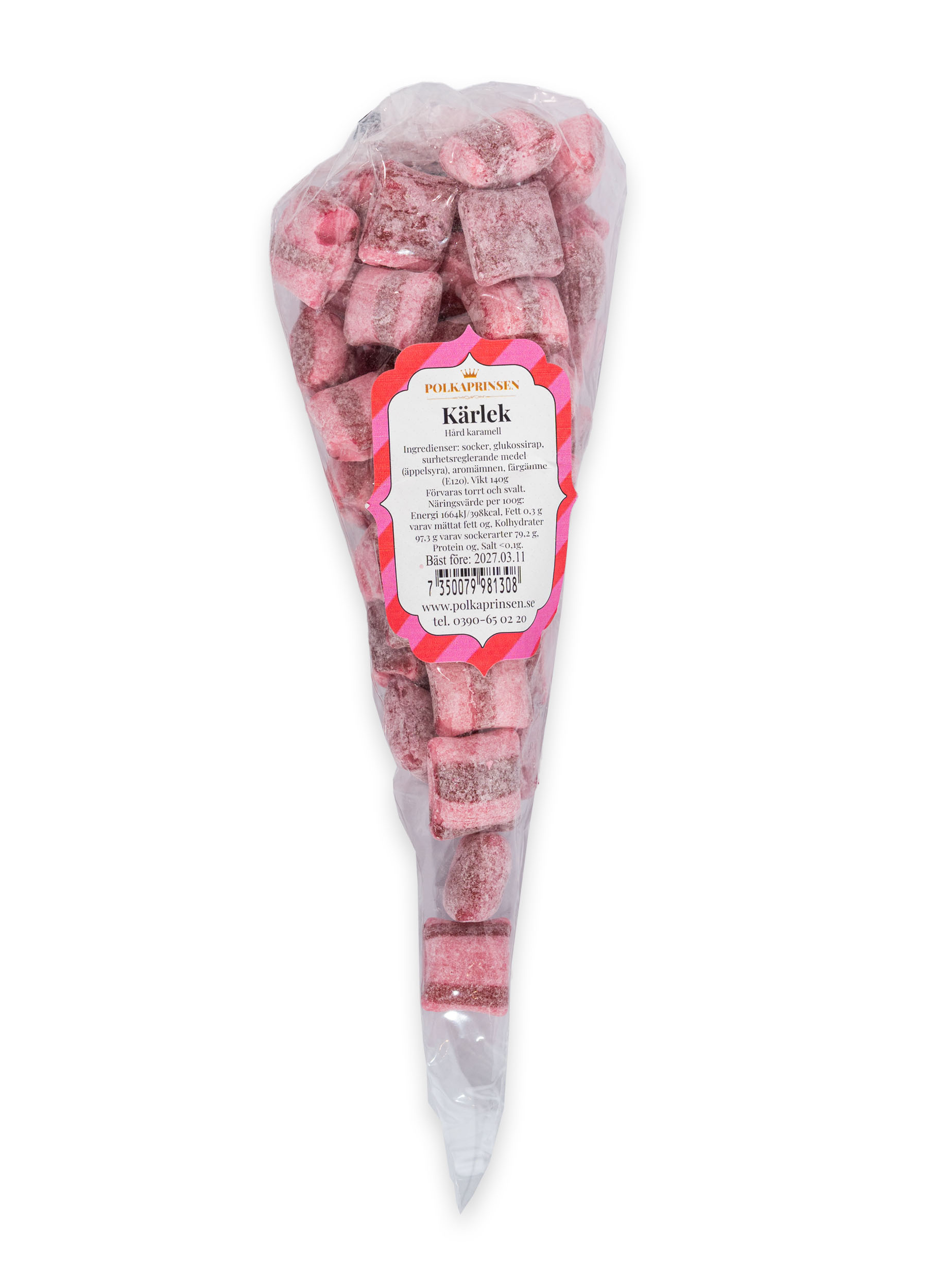 Socker, glukossirap, aromämnen, färgämne (E120).